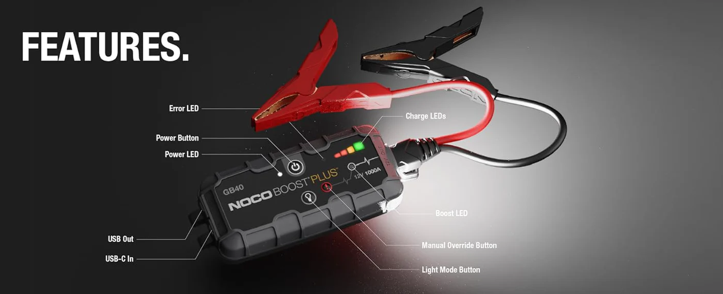 O NOCO Boost Plus GB40 é um booster de arranque NOCO compacto e potente, desenvolvido para realizar arranques de emergência em veículos com bateria descarregada. Este jump starter NOCO 12V combina segurança, fiabilidade e elevada performance, sendo ideal para automóveis, motos, embarcações e equipamentos com bateria de 12V.